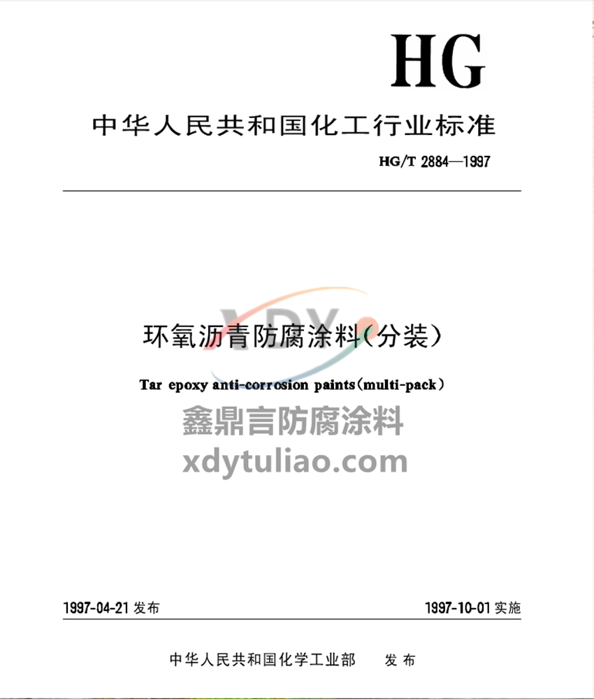 環(huán)氧瀝青防腐涂料(分裝)標(biāo)準(zhǔn)HG/T2884-1997:本標(biāo)準(zhǔn)規(guī)定了環(huán)氧瀝青防腐涂料(分裝)產(chǎn)品的要求、試驗(yàn)方法及標(biāo)志、標(biāo)簽、包裝。本標(biāo)準(zhǔn)適用于以環(huán)氧樹(shù)脂、煤焦瀝青為漆基,加入顏料、體質(zhì)顏料、溶劑、助劑及固化劑而制成的雙組份環(huán)氧瀝青漆底、面漆配套的防腐涂料(包括普通型和厚膜型兩類)。該涂料主要用于水下及地下鋼結(jié)構(gòu)的重防腐涂裝。