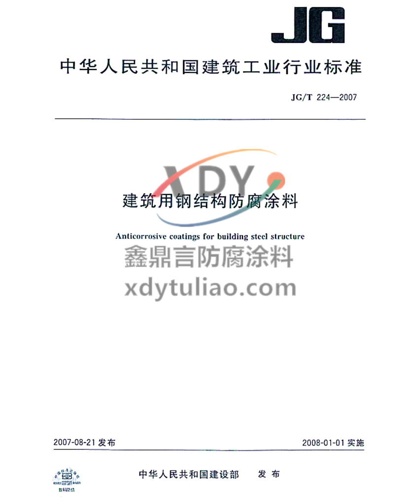 建筑用鋼結(jié)構(gòu)防腐涂料行業(yè)標(biāo)準(zhǔn)JG/T 224-2007