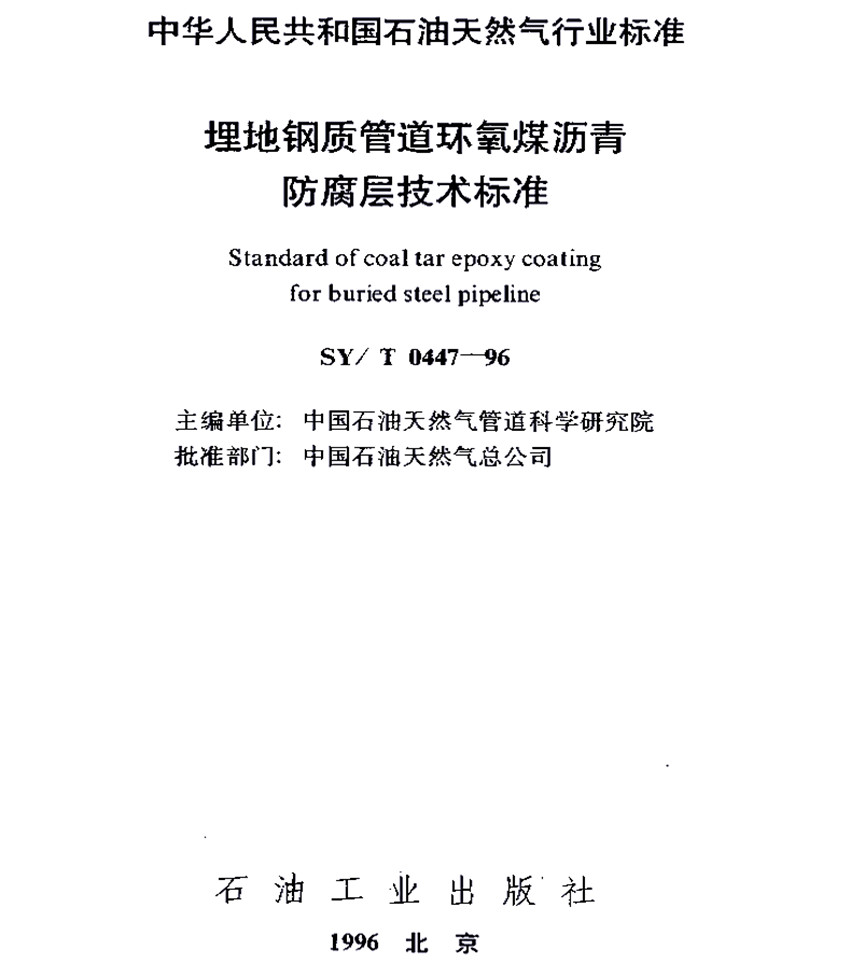 SY/T 4105-2005鋼制儲(chǔ)罐無(wú)溶劑聚氨酯涂料內(nèi)防腐層技術(shù)規(guī)范 ICS 25.220.60;23.040.10 P 94 備案號(hào):16434-2005 SY 中華人民共和國(guó)石油天然氣行業(yè)標(biāo)準(zhǔn) SY/T 4105-2005 鋼制儲(chǔ)罐無(wú)溶劑聚氨酯涂料內(nèi)防腐層技術(shù)規(guī)范Technical standard of non-solvent polyurethane internal coatings f